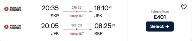 Çünkü THY’nin İstanbul kalkışlı New York bileti 41.653TL iken Üsküp kalkışlı aynı bilet 401£~ 23.220₺